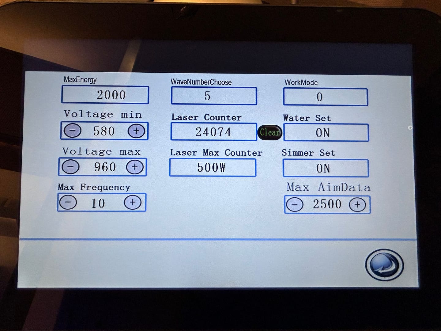 Energie-instellingen: 50 mJ – 2000 mJ